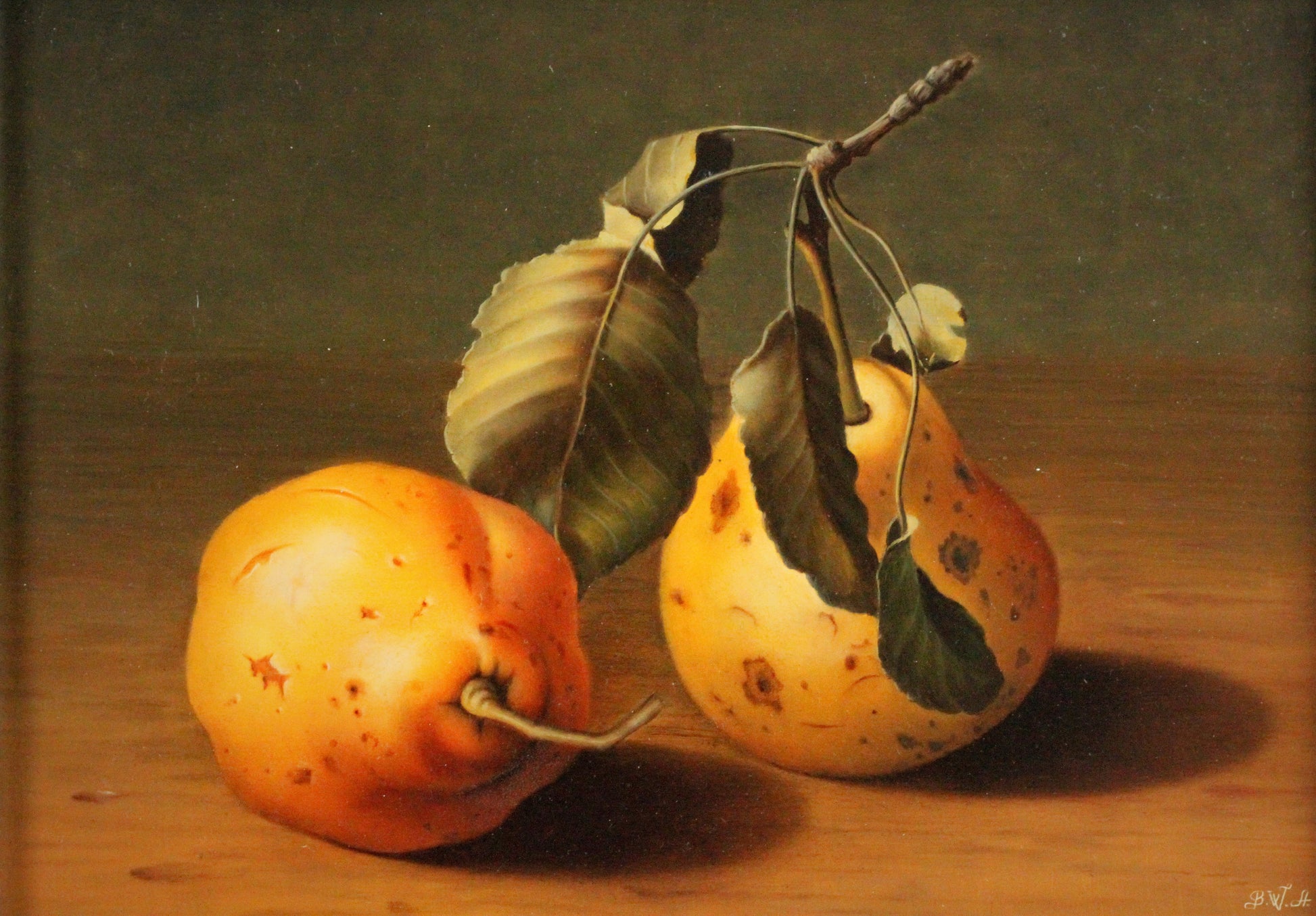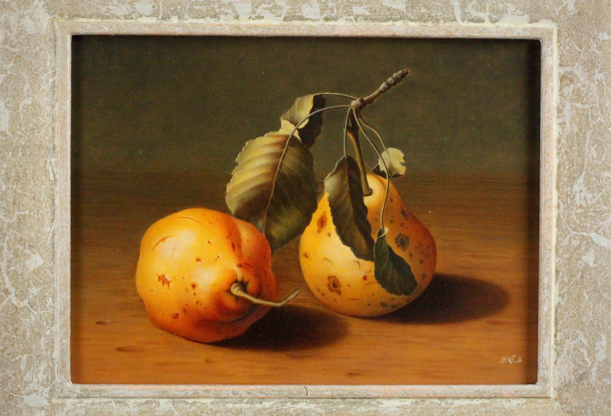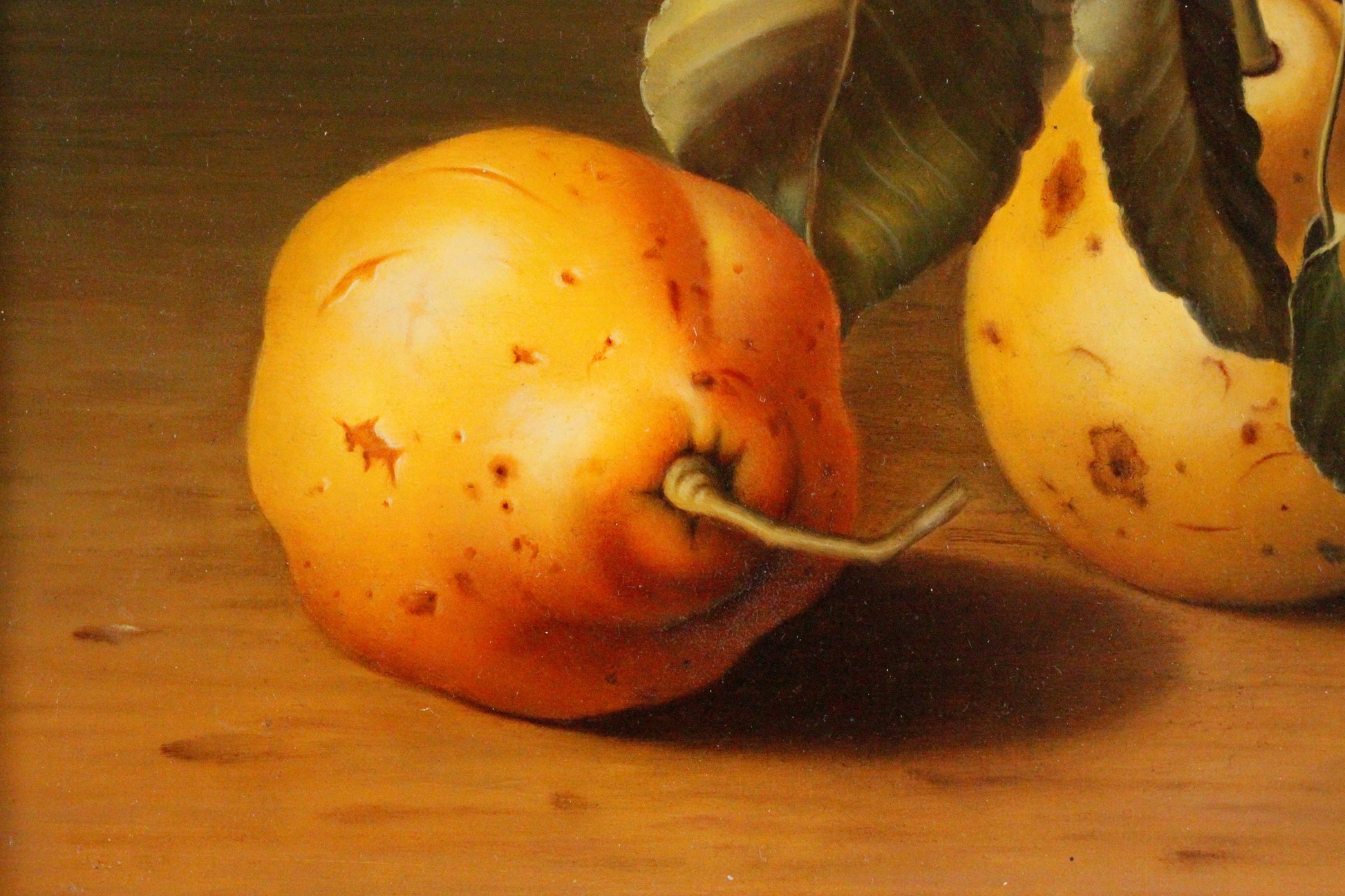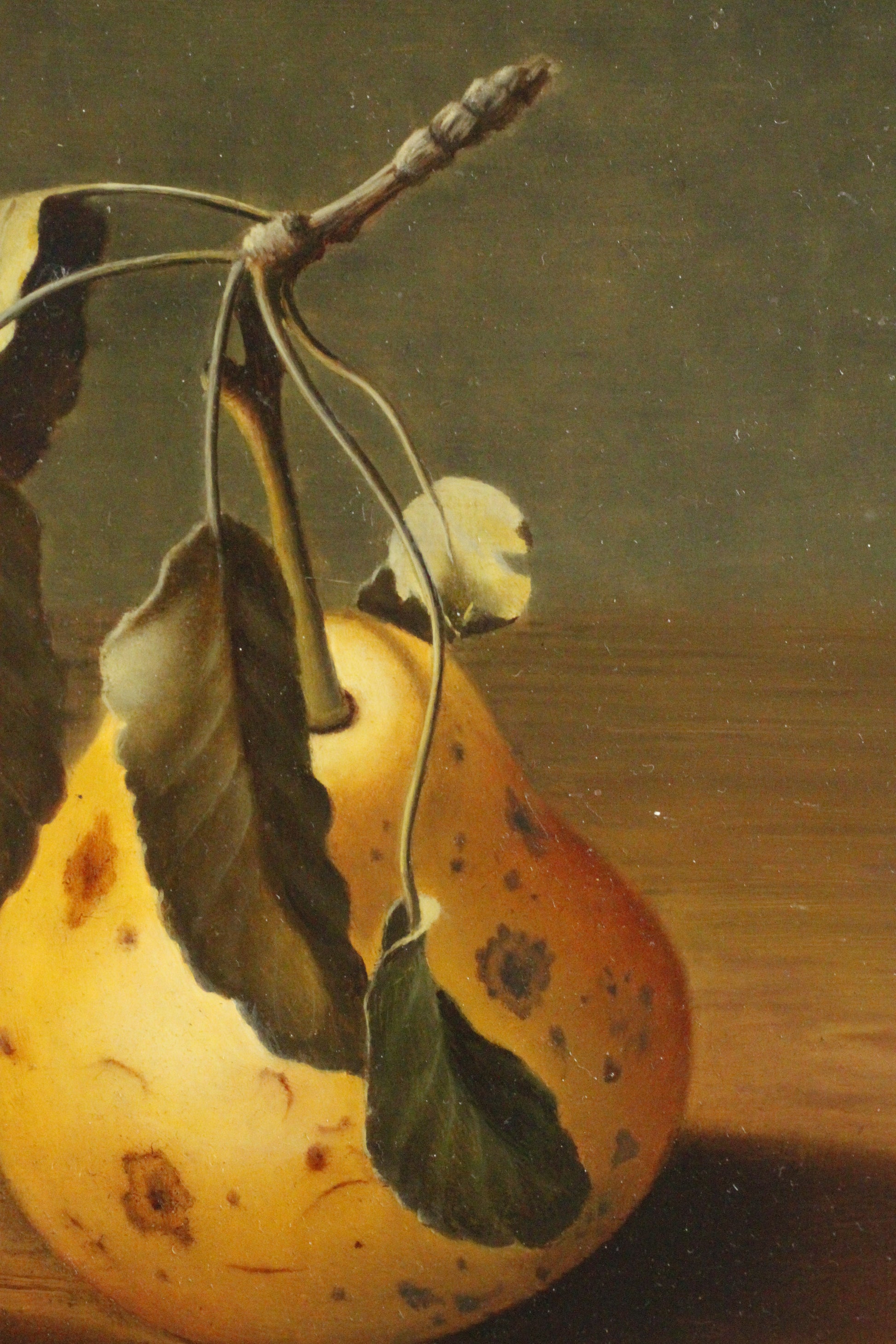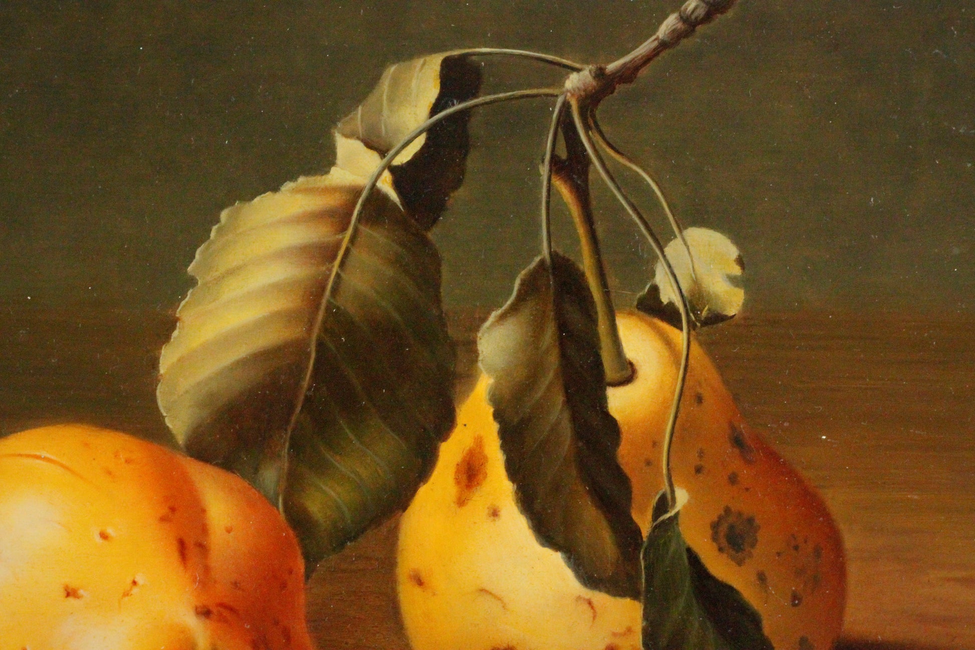 Ölgemälde, signiert Balasz Wanyi (1943) - Fotorealistisches Stillleben mit Quitten nach Vorbild des Manierismus.